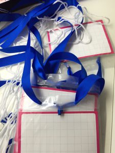 写真撮影したりしたくない人は、一目でわかるよう青リボンの名札を作りました!